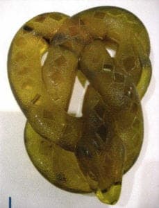 Cool Design, pendant 'Snake'. Carved in green amber (the rarest amber, origin: Chiapas, Mexico)