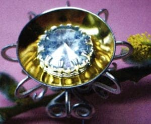 Hagen Gamisch, ring 'Aedes Consiliarius'. Silver sandcasted, fine gold plated, synthetic spinel, © Mohrloft.de