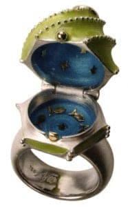 This ring by Thomas Wiltmann is indeed the 'Cherry on the Cake', as the name suggests, and conceals all the treasures of the sea inside