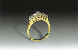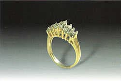 You recognize the 14k yellow gold and diamond ring which Mr. Glidewell purchased from you a few years ago. You notice that one prong and one diamond are missing and, checking the rest of the stones with a fingernail, you find that others are loose as well (Figure 13. 1).