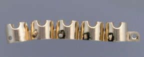 This is a view after each weld joint has been completed on both sides of the link. I cleaned the assembly in the ultrasonic to remove the surface residue. The melted and welded end of each hinge rivet is raised less than 1/2 millimeter above the surface of the link.