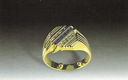 This gold ring with diamonds and sapphires is brought in by an elderly gentleman who had developed arthritis in recent years. He complains that the ring barely fits over the knuckle. But after he forces it on, the ring rotates loosely around his finger, partly because it is top heavy (Figure 7. 1). You suggest adding sizing beads as the simplest and most cost effective solution. The alternative choices are more involved and costly.
