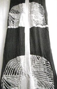 'Breathe in/breathe out' is the name given by Dongchun Lee to his black and white pendant made from iron, latex and twine