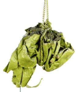 No fear of unusual materials: Eun Mi Chun uses pig skin, seeds, hair, silver, zinc-plated steel, paper, steel wire and twine for this chain created in 2007