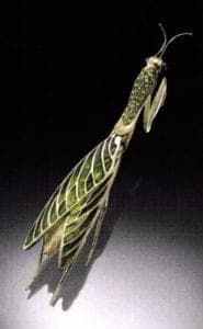 When I started, I mostly worked on cloisonné pieces. Today, I favor the filigree and the plique-a-jour technique. Depending on my inspiration I may use other techniques in the future. In 2002 had my first tour de force show in plique-a-jour at the Faber gallery in New York. It was entitled "Wings of Color" and was a study of real species of butterflies and moths. The wings were all hand fabricated and enameled. Each wing was individually lapped to a shiny transparent finish. The species were exhibited in what looked like butterfly collectors' boxes. I wanted by that to encourage people to own one of these species as a real jewel to wear and also hang in their home as art work.