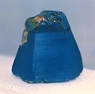 ![]() Left: 502-ct Burmese sapphire crystal. This was unearthed on Feb. 22, 1994, at Khabine, near Gwebin, in Burma's Mogok Stone Tract. | ![]() Right: The base of the crystal, showing concentrations of silk. |