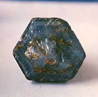 On Feb. 22, 1994, a large sapphire of 502 cts was unearthed at Khabine, about 2.4 kms from Gwebin. The crystal is a single pyramid of rich blue color, and slightly silky (see Figure 6).