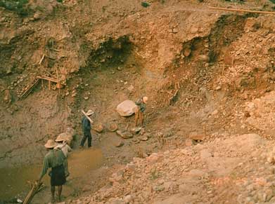 | Figure 4. Sapphire mine of U Mya Mg at Khabine, near Gwebin, Mogok, Burma. In February of 1994, this mine yielded the 502-ct sapphire crystal in Figure 6. Photo: U Khin Mg Win |