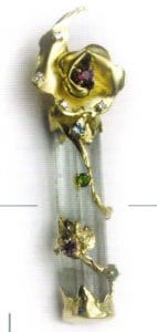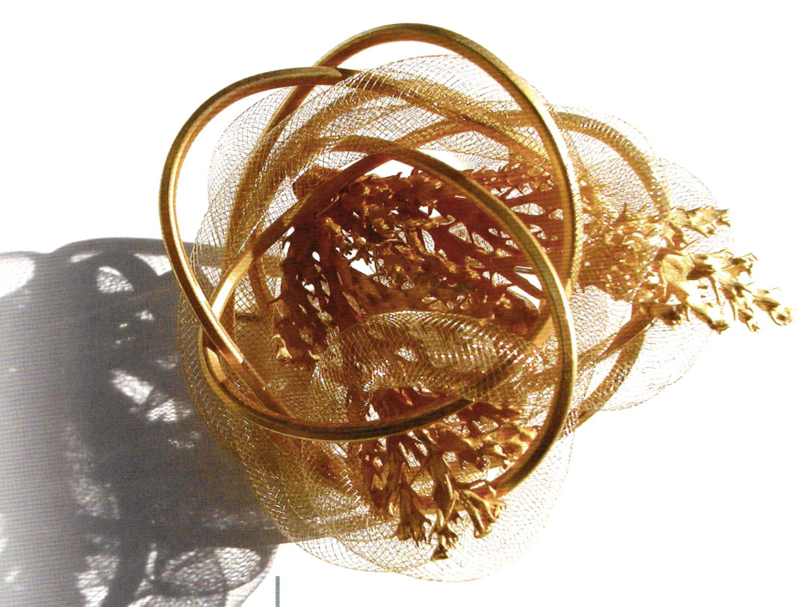 Mari Ishikawa also belongs to Japan's young jewelry designing elite. She recently exhibited her works in the Alternatives Gallery in Rome under the title 'In the shade of the tree'. After completing a masters degree in art at Nara university, she studied jewelry design at the Hiko Mizuno College of Jewelry. In 1994, she went to Munich and studied at the art academy there under the direction of Otto Kunzli. After graduating in 2001, she established herself as an internationally distinguished artist. She has won numerous awards including the 8th Itami City Contemporary Craft Award and the Herbert Hoffmann prize. Her works are part of the permanent exhibition at the Pforzheim jewelry museum, the Hiko Mizuno Collection in Tokyo, the Grassi Museum in Leipzig and the Pinakothek der Moderne in Munich. She derives her inspiration from Japanese tradition. In her latest collection, she interprets the verses of Sei Shonagon, a classic of Japanese literature dating from the year 1000. The text refers to the transcience of time and the phenomenon of transformation of a bud into a flower is poetically captured in words. Ishikawa transfers these lexical images into filigree pieces of jewelry, just like photographs.