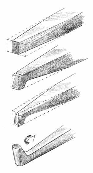 File a curve in the lower surface or belly of the tool. Blend all curves neatly into the shaft. Sharpen on a stone after hardening and tempering.