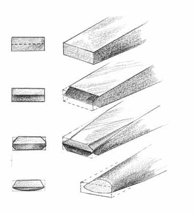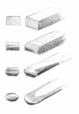 Round the underside of the tool, again striving for a uniform and symmetrical curve. Sharpen with a whetstone after hardening and tempering.
