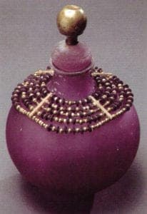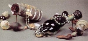 Heroic in scale, the prayer beads of Jenny Pohlman and Sabrina Knowles could be envisaged draping the bosom of an Olympian goddess or the wall of a downtown gallery with equal aplomb. Drawing from a primitive ground of inspiration, these artists combine the ancient arts of glass sculpting and metalsmithing to create "architectural adornment" that resonates with mythological, anthropological, and feminist themes.