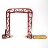 The titanium frame uses a more sophisticated cam system for tensioning. The cam is a lever that is attached to the top of the frame. Once you insert and tighten the blade, you pivot the lever from the open position to the closed position, tensioning the blade the exact same amount every time. This feature should be a great benefit to both the experienced jeweler and the novice who hasn't yet figured out the subtlety of blade tensioning.