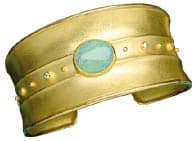 | 18K gold hand-fabricated cuff with opal and diamonds. |