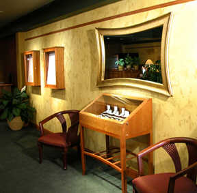 A separate and semi-private sitting area features a microscope where clients can look at gemstones, get a bit of an education, relax while the Jette staff shows and discusses design options and other details about the jewelry they will purchase. According to Jette and Ball, this is a much appreciated service and their customers love being involved in the process, especially with commissioned pieces.