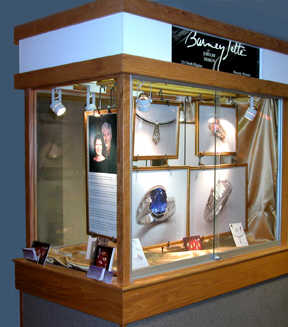 Barney Jette designs are featured exclusively at the store. Barney personally selects gemstones of the highest quality for his jewelry. He meticulously prepares wax models for each piece, custom-fitting the stones he will incorporate. All casting, setting and finishing is done on the premises. Included in the inventory are hundreds of articles of jewelry in a variety of price ranges - all Jette originals and all a part of the 'brand'. Fifty percent of the stores sales are commissioned pieces while the balances of sales are generated by the originals from the showcases.