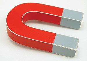| Magnet brooch: sterling silver and paint; fabricated hollowform; 1/2″ x 2″ x 3″. |