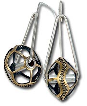 | ning gear earrings: sterling silver and pocketwatch gears; fabricated; 1″ x 2″ x 1/2 " |