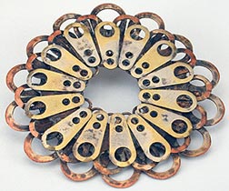 "I met a friend from 6th grade and lo and behold we were both jewelers and she had all the jewelry-making equipment. She showed me how to use the tools and, whenever I took care of her cats, I'd tinker in her studio and melt things. It felt so comfortable; I never had trouble experimenting or figuring things out. I always had a natural sense of how to make things. I began buying tools: a flex shaft, saw, ball peen hammer, and a vice. All my early jewelry had been cold connected - I used lots of riveting - but buying a torch changed that."