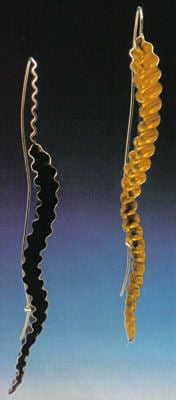 By the time Eid's torque with black pearl encrusted ends won the MJSA (Manufacturing Jewelers and Suppliers of America) Award in 1996, she was ready to try something new. As though on cue, she discovered a daring new technique that would give her jewelry a new twist. Jewelry guru Charles Lewton-Brain had a new approach to shaping metal, and he was ready and willing to share it.