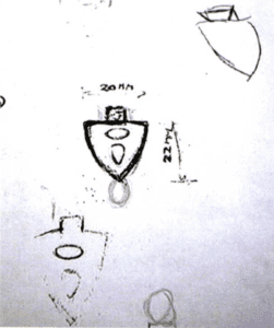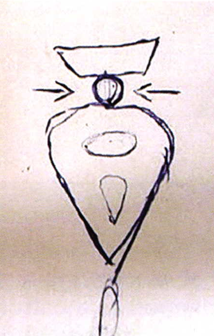 We'll start just as we always do, with a rough sketch and a general idea. Stacey wants to be able to put a large chain, or possibly a black silk cord, on this piece. That means either a large hole, or a large bail for the chain to pass through. She also envisions a gemstone suspended and dangling on the bottom. As a bench jeweler, I see two different shaped stones that are to be set in raised bezels. That should not be too difficult. But I don't have a clue yet how I am going to suspend the gemstone at the bottom, or pass a large chain through the piece.