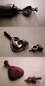 While I was waiting for the burn out cycle to complete, which takes about 8 hours,I decided to inject several more waxes. As it turns out the only two that came out were the second and the third waxes. I never got a usable wax after that. The sprues were so heavy, and the wax so delicate, that they kept breaking trying to get them out of the molds. After dozens of adjustments to the rubber mold, I realized it was hopeless. It was time to switch to Plan B, just as soon as I figured out what Plan B was.