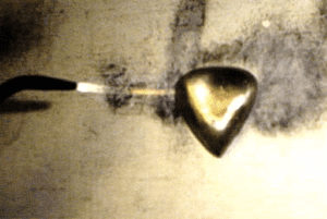 Here is Stacey injecting the ceremonial first wax. They never work the first time, so I always make her do the first one. But, the second and third went without a hitch. They came out just as they were supposed to. Much to my surprise, my sprue system worked. So now in order to turn the wax into metal, we need to cast them. I cast two waxes in sterling silver.
