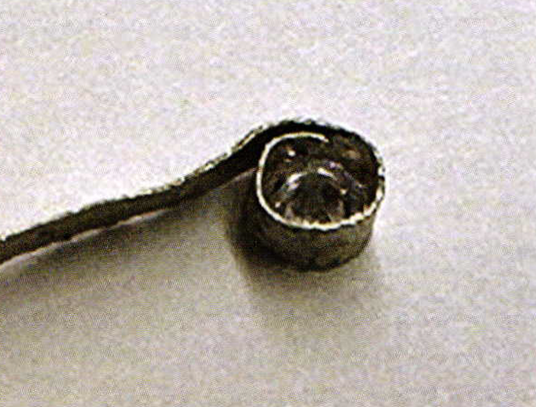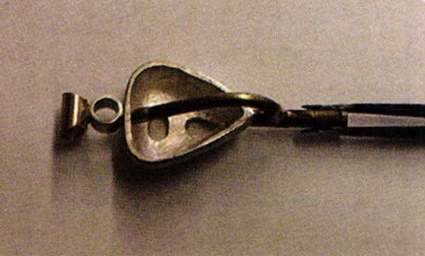 First, a tip on determining the length of the bezel wire: Roll out a very thin strip of sterling silver just thicker than aluminum foil, so it bends very easily. Now wrap it around the stone and pull it tight. Mark where two edges meet with a razor blade and unroll the strip. Next, measure between the two marks and transfer that to your bezel wire and you'll get it right every time. This works well for all shapes ofstones. Just remember to make your strips very thin so they wrap and conform to the stone shape easily. Now, before I actually set the new bezels on the main body I willanneal the piece. Always anneal the piece; skipping this step will come back to haunt you later during construction. I now spend about an hour or so trying to find the perfect spot to solder the bezels onto the main body. The final placement is shown here. It's here that everything changes.