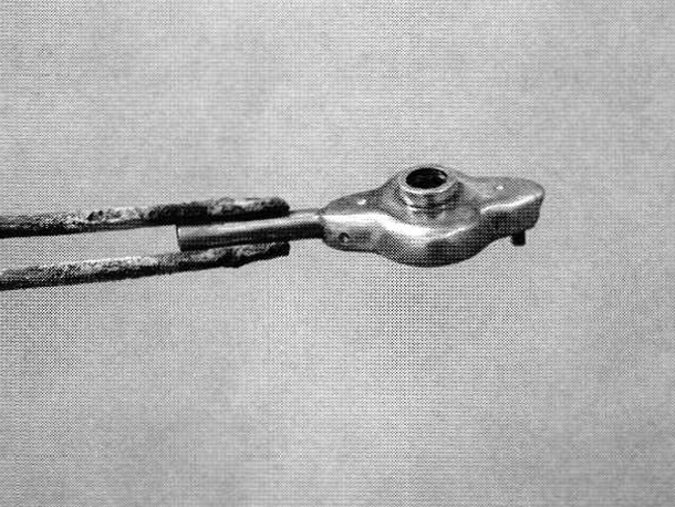 This has puzzled me since I first saw the sketch. As of now, I still have no idea how I'm going to pull this off. I need something that can be cast into the production model, and be relatively quick to assemble. So, what I came up with was using a bead cap from one of our earlier designs (shown in photo) and a rivet. The cap on the top was the perfect size, and it allowed me to reuse a piece that I already had in production. (By the way, it seldom works out like that.)