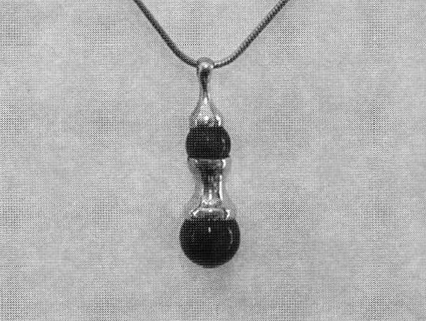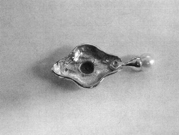 After I clean up and polish, I can clearly see the end of the goldwire. Using a small round bur I place a indentation and make onemore rubber mold. This photo shows the finished indentation. Now every time I make a new pendant, I just drill through the indentation, and insert the chain. I've reduced a 20 minute operation down to about 1minute.