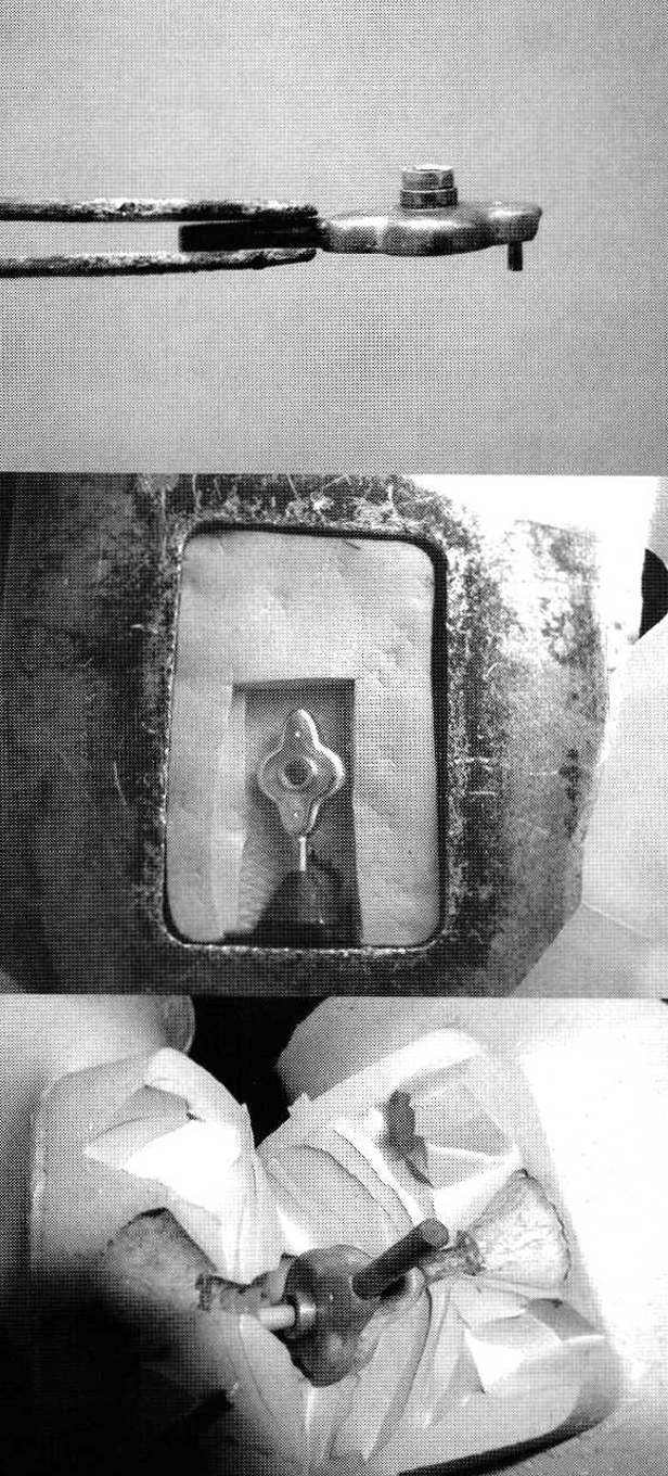 I now remake the bezel, which you can see in this photo. The oldbezel is just sitting on top ofthe new bezel to show the difference in size.