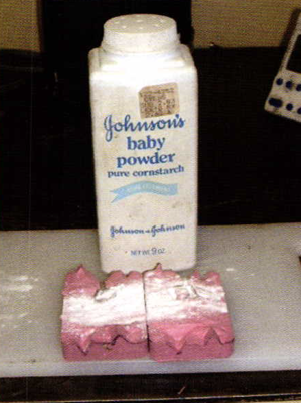 Now, clap the two pieces together several times like chalkboard erasers. This will remove any excess, and evenly distribute the powder throughout the mold. The powder will create just enough of a gap between the two pieces of rubber to allow the air to escape, yet contain the wax within the mold. I usually re-powder the mold every other injection. Now, all I need to do is inject a few molds and I'm ready to cast, right? Wrong!