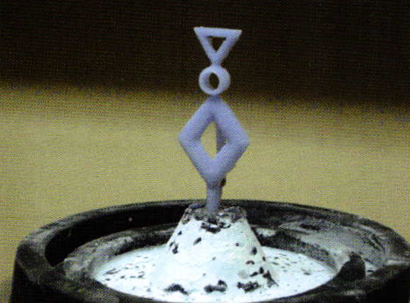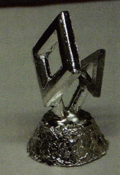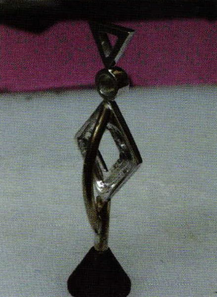 The first thing Stacey decided was the piece was too flat and one-dimensional. So, to add depth, we decide to add some bevels to the flat surfaces. The two waxes sprued to the rubber base, and the finished silver casting, clearly show how the bevels really enliven this piece up.