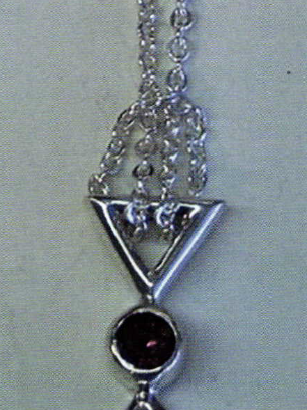 Stacey and I are always looking for innovative ways to suspend a pendant from its chain. It's a pet peeve of mine when the clasp is beside the pendant, instead of on the back of your neck. So, we are always trying to find ways to keep the clasp in its proper place; hidden. The photo shows how we looped the chain through the top of the pendant. I then went behind the pendant and tacked two links together to keep it in place. I set a rhodalite garnet in the first one, and I'm finished.