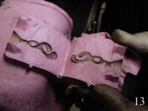 Photo 12 and l3 show the mold during the cutting process.