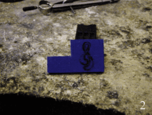 Stacey and I agreed that 31mm is the desired height. I have Stacey draw the pendant to scale on the wax, which you can see in photo 2.