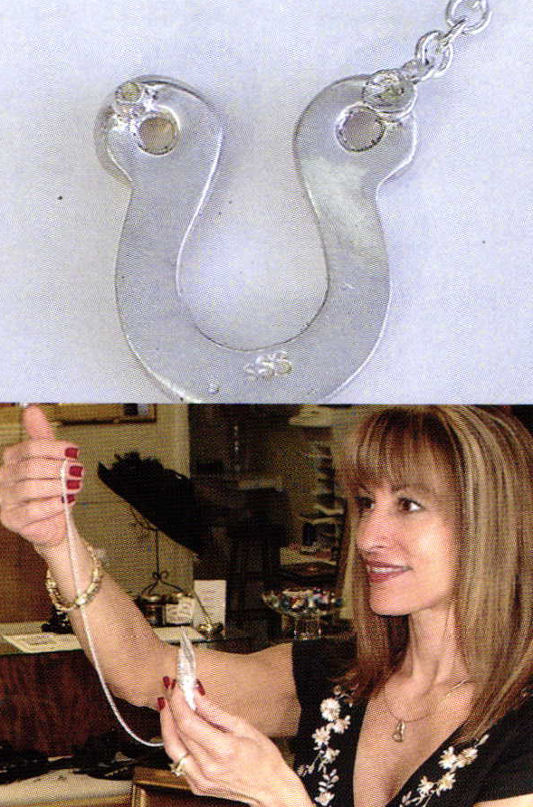 There is a lot of jewelry currently based on the shape of the horseshoe, so we wanted to design a piece of jewelry that would give the horseshoe a new look. The sketch shows the first drawing of her idea.From this sketch an original model was made from wax, cast, and a rubber mold made using the methods described in previous articles.