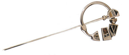 | Penannular Brooch, 1979Sterling silver, inlays of agate, caribou antler, tiger's eye, ligmavitae, ebony, jasper, pyrites, copper ore 3 x 8 1/4″ |