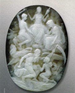 In order to strengthen their power at home, Roman Emperors commissioned Greek stone cutters with the production of valuable cameos in their image. Dioskurides, the Greek royal cutter at the court of Emperor Augustus, processed the Arabian sardonix, the stone of preference, used to make classic examples of antique stone cutting, with great artistic skill. The next stage involved cameos in several layers such as the Gemma Claudia, the Lion Cameo (now found in the Museum of Art History in Vienna), whereby the multiple colors were used to create charming nuances of shade.