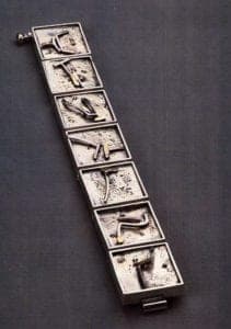 Although some time ago Arentzen reached the professional level where jewelry sales earn her a living, she has managed to retain her pioneering spirit. And, although her career might be read as a blueprint for success as a metalsmith, the zest for life that overflows into her work is a singular, nontransferable trait. She once described object-making as the "visual record of my adventures."