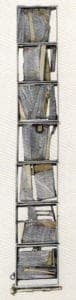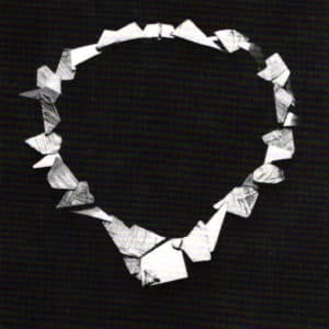 Indeed, this seems to be reflected in Arentzen's ability to distill visual ideas in configurations that seem uncontrived but irreducible. For example, in a necklace called, Stepping Stones, in which angled units just meet at irregular intervals, one immediately feels a tenuous balance, a precarious dance from one section to another.