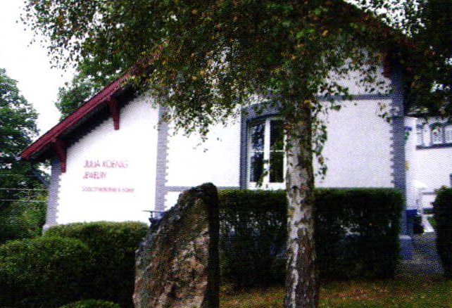 If you follow the constantly ascending curving road in the picturesque Taunus mountain range from Kelkheim near Frankfurt am Main in the direction of the Magic Mountain, you encounter a historical and captivating little house that seems to sit in solitary splendor on the mountain. Built in 1898, it was originally used as the equipment house of a sanatorium. This is where Julia Koenig opened her goldsmith studio & gallery 107 years later.