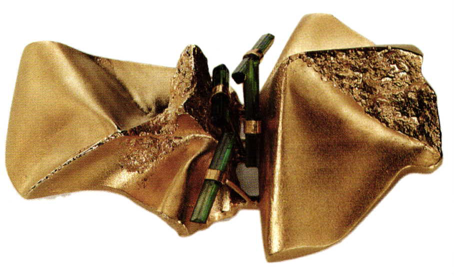 The final decade of the last century is not characterized by any definite direction. Everything is possible, everything is allowed: the great diversity of materials is accompanied by a less inhibited treatment of kitsch and fashion. Irony and humor also appear more frequently in these works. The great battle to be recognized as art is over. In its wake, creative design is allowed new freedom to use a wide spectrum of materials and to combine them. New jewelry pieces are created and develop their own values through their relationship to the wearer, and in connection with his or her memories and associations.