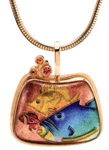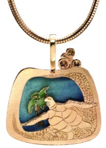 Patsy bought several cloisonné pieces for her gallery in Florida and was hooked. When she moved to Hawaii with her husband and small children, the stunning landscape inspired her to study cloisonné in earnest. "Hawaii is like Candyland for artists," says Patsy. "There are colors everywhere - the fish, the coral, the birds, the flowers, it's spectacular." And so her jewelry line was born: Alohi Lani, meaning heavenly light.
