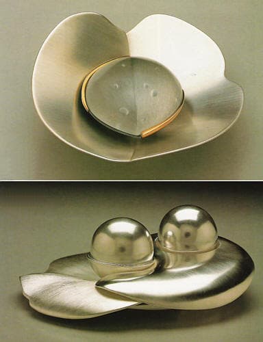 ![]() | Nest, 1999 sterling silver, 18k gold, imitation coral 3 1/2 x 7 x 1″ Photo: David L. Smith |