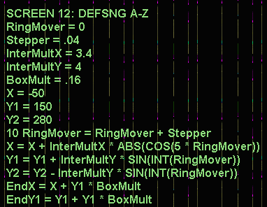 These programs are all in QBasic, the language which was bundled with MS-DOS versions 5.0 & later. The programs are all short; the algorithms involve nothing more complex than elementary algebra & trigonometry, and should be easily adaptable to many other languages, operating systems, CPUs, display/output devices, ect.