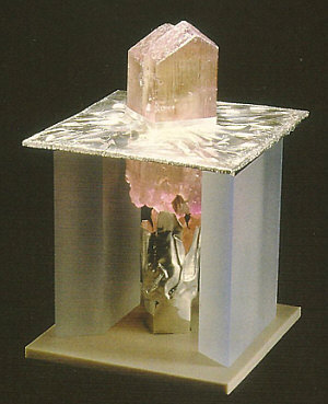 | Organic Cube, 1992 Sterling silver, acrylic, Kunzite spodumene, crystals 15 1/2 x 10 1/z x 10 1/4″ Collection of Michael M. Scott Photo: Jerry David |