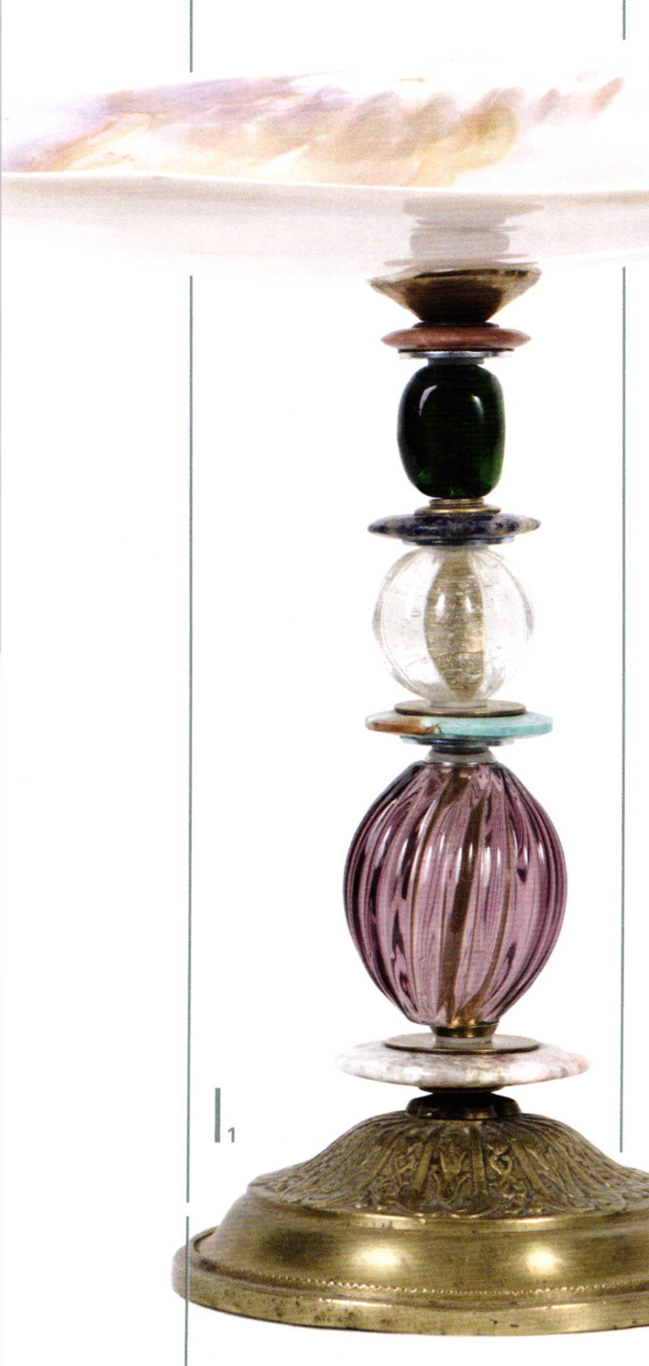 He never stops looking - everywhere he could find everyday items just waiting for him to be transformed into unique sculptures: candle holders, door knockers, antlers, cut minerals, animal figures, exotic nuts - nothing is safe from this specialist in discarded objects. At his Berlin workshop, the 65 year old dismantles these acquired possessions and brings them back to a new, individualized and artistic life through his unique compositions. His workshop and attached sales rooms conceal a host of surprises in every corner that it is hard to know where to look first. He is also increasingly acquiring new treasures from old brass, bronze and metal elements. Also fascinating are the materials Klaus Dupont has been using to create his unique and stylish showpieces for the last 15 years - glass beads, coral, antelope horns, brass figures, colored stones, animals' teeth and metal components. Each piece is given a hand-crafted marble or wooden base which is coated with five to seven layers of a special acrylic-water varnish mix and then made to look like marble using fine brush strokes. His valuable and striking collection of objects stretch up to the skies, attached to a threaded rod - each individual item being a joyous and unique compilation of objects: galloping horses carry luminous balls of Murano glass on their backs upon which are pieces of fiery red coral; a faun carries a torch of glass balls and coral, a fish grows a tree-like form from its open mouth. Klaus Dupont's pieces are like exhibits from a Baroque treasure trove of delights, sometimes magnificently bizarre, sometimes simply unique in the truest sense of the word. It takes a few attempts for the artist to find the right combination of elements: he threads, sands, sews and paints and then examines his work, sometimes making more changes. They all bear the stamp of this artist as each unique piece expresses the passion and joy he used to create it. His items are treasured by those with a soft spot for something striking - all across Europe: from Hamburg to Zurich, Berlin and Vienna, his pieces are only sold in top furniture stores.