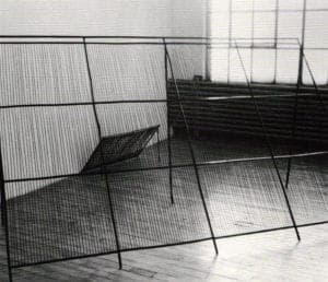 Important in this progression were Night Lines, 1984, a triangular construction of bamboo and silk, which foreshadowed a piece in the show entitled Shelters, and Cocktail Fence, 1985, a witty piece directly akin to Pierre Degen's Ladder Piece and Balloon from 1983.