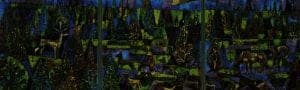 Drerup admired the work of Hans von Marées (1837-1887) who, like other European painters of the second half of the nineteenth-century (Renoir and Bouguereau, for example), longed to return to the depiction of an Arcadian landscape inhabited by idealized figures. Humans and animals at peace in undisturbed natural surroundings are Drerup's characteristic themes. The strong linear quality of the simplified figures and the compressed space of Drerup's compositions attest to the artist's knowledge of cubism and the avant garde art of the early twentieth-century. Foreground and background in Birds and Fox seem almost to merge forming a single faceted shallow space of flickering light and dark hues. Karl Drerup wanted to acknowledge and retain a meaningful link with the art of his European past while developing his own work in the present.